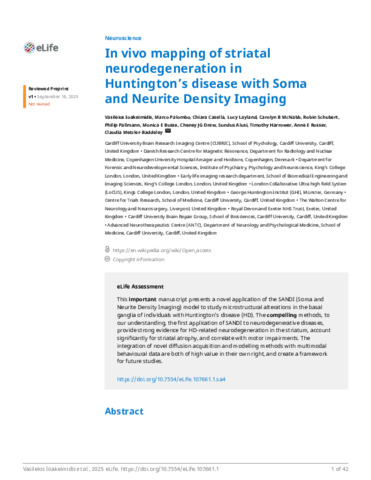 In vivo mapping of striatal neurodegeneration in Huntington's disease with Soma and Neurite Density Imaging.