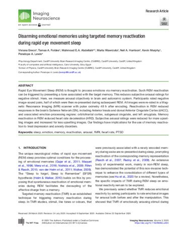 Disarming emotional memories using Targeted Memory Reactivation during Rapid Eye Movement sleep.
