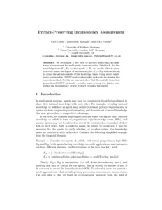 | Corea, Carl, Kampik, Timotheus and Potyka, Nico 2025. Privacy-preserving inconsistency measurement. Presented at: The 18th European Conference on Symbolic and Quantitative Approaches to Reasoning with Uncertainty (ECSQARU), Germany, 23-26 September 2025. |