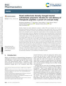Novel zwitterionic densely charged neutral sulfobetaine polymeric micelles for oral delivery of therapeutic peptides: a proof-of-concept study.