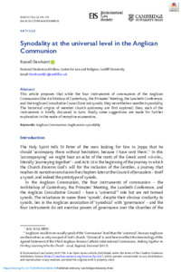 This article proposes that while the four instruments of communion of the Anglican Communion (the Archbishop of Canterbury, the Primates’ Meeting, the Lambeth Conference, and the Anglican Consultative Council) are not synods, they nevertheless manifest synodality. The historical origins of member church autonomy are first explored; then, each of the instruments is briefly discussed in turn; finally some suggestions are made for further exploration in the mode of receptive ecumenism.
