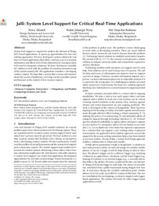 System level support is required for modern day Internet of Things (IoT) based applications. It opens up opportunities for low-cost solution approaches. We have developed a system solution for real time IoT based applications that allows real time access to location information and allows level of data abstraction for tracing location to be used in emergency situations. We have developed a wearable IoT solution to deal with the problem of sexual harassment on top of the system named Jalli. The application considers a developing country context. We hope that a system that is aware and sensitive about the resource limitations can bring out best possible system performance in the context of low resource regions.