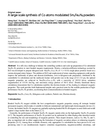 | Xue, Hang, Yi, Yu-Hao, Jia, Bo-Qian, Chen, Jia-Ying, Dong, Long-Long, Xue, You, Chen, Kai-Yun, Ma, Zhen-Hui, Cheng, Danyang and Xu, Jun-Jie 2025. A large-scale synthesis of Co atoms modulated Sm2Fe17N3 powders. Tungsten 10.1007/s42864-025-00350-z |
