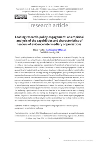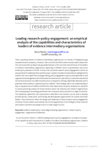 Leading research–policy engagement: an empirical analysis of the capabilities and characteristics of leaders of evidence intermediary organisations.