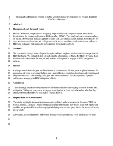 Investigating blame for human-wildlife conflict: reason conditions for human-elephant conflict in Borneo.