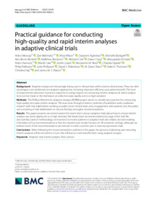 Background Adaptive designs are increasingly being used in clinical trials within diverse clinical areas. They can offer advantages over traditional non-adaptive approaches, including improved efficiency and patient benefit. The level of improvement observed in practice depends to a large degree on conducting interim analyses (at which adaptations can be made to the trial based on collected data) rapidly and to a high standard. Methods The ROBust INterims for adaptive designs (ROBIN) project aimed to identify best practice for conducting high-quality and rapid interim analyses. This was done through evidence synthesis of published work, qualitative research with trial stakeholders working at public sector clinical trials units, engagement with patients and the public, and a meeting of trial stakeholders to discuss findings and agree recommendations. Results This paper provides recommendations for teams that conduct adaptive trials about how to ensure interim analyses are done rapidly and to a high standard. We break down recommendations by stage of the trial. We also identify a lack of methodology on how best to involve patients in adaptive trials and related decision-making. A limitation of our recommendations is that the research was mostly focused on UK academic settings, although we believe much of the recommendations are relevant in other countries and to industry-sponsored trials. Conclusions When following the recommendations outlined in this paper, the process of planning and executing interim analyses will be smoother; in turn, this will lead to more benefits from using adaptive designs.