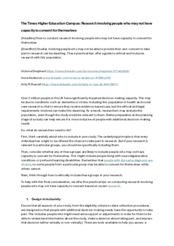 How to conduct research involving people who may not have capacity to consent for themselves.