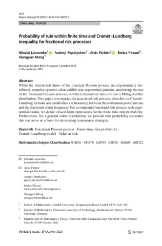 Leonenko, Nikolai ORCID: https://orcid.org/0000-0003-1932-4091, Pepelyshev, Andrey ORCID: https://orcid.org/0000-0001-5634-5559, Pichler, Alois, Pirozzi, Enrica and Meng, Xiangyun