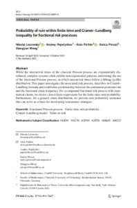 Probability of ruin within finite time and Cramér–Lundberg inequality for fractional risk processes.