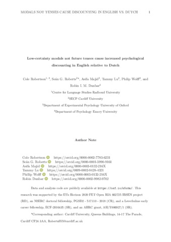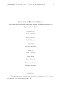 Low-certainty modals not future tenses cause increased psychological discounting in English relative to Dutch.