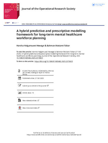 A hybrid predictive and prescriptive modelling framework for long-term mental healthcare workforce planning.
