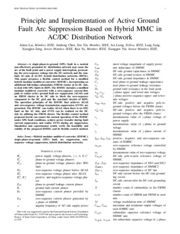 Principle and implementation of active ground fault arc suppression based on hybrid MMC in AC/DC distribution network.