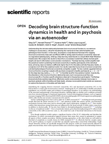Decoding brain structure-function dynamics in health and in psychosis via an autoencoder.