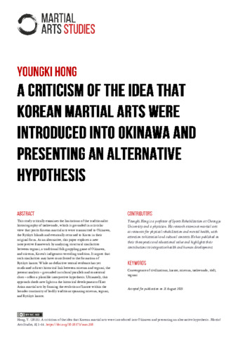 A criticism of the idea that Korean martial arts were introduced into Okinawa and presenting an alternative hypothesis.