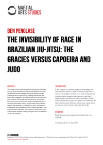 This research article examines why the racialization of Brazilian jiu-jitsu has so often been invisible to non-Brazilians. It argues that Brazilian jiu-jitsu emerged in a highly racially stratified context and looks in particular at challenge matches that the Gracie family engaged in with fighters who practiced capoeira or judo. It argues that through these competitions, not only was Brazilian jiu-jitsu located within Brazil’s racial hierarchy, but it was often positioned as ‘white,’ though usually in an unspoken manner. The ‘invisibility’ of Brazilian jiu-jitsu’s racialization is connected to Brazil’s hegemonic racial system where race is both of central social importance, yet is often not spoken about, and a context where whiteness is both privileged, yet also variable and not directly identified.