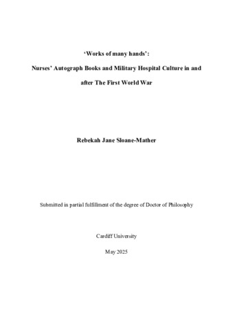 ‘Works of many hands’: Nurses’ autograph books and military hospital culture in and after the First World War.