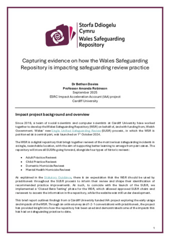 Capturing evidence on how the Wales Safeguarding Repository is impacting safeguarding review practice.