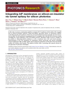 Integrating InP membranes on silicon-on-insulator via tunnel epitaxy for silicon photonics.