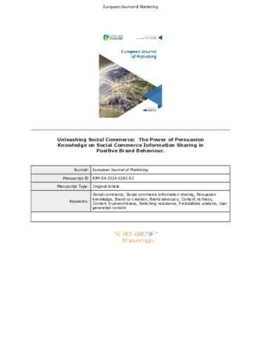 Unleashing social commerce: the power of persuasion knowledge on social commerce information sharing in positive brand behaviour.