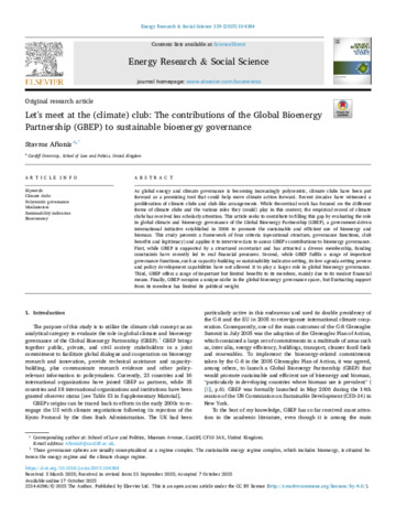Let's meet at the (climate) club: The contributions of the Global Bioenergy Partnership (GBEP) to sustainable bioenergy governance.