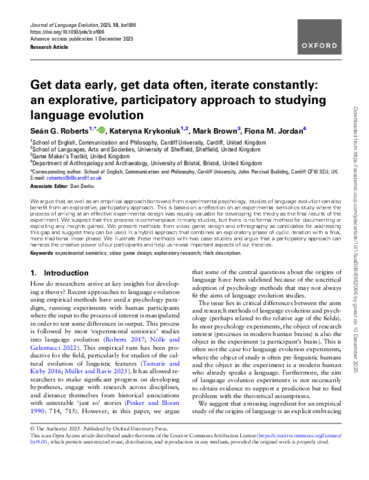 Get data early, get data often, iterate constantly: An explorative, participatory approach to studying language evolution.