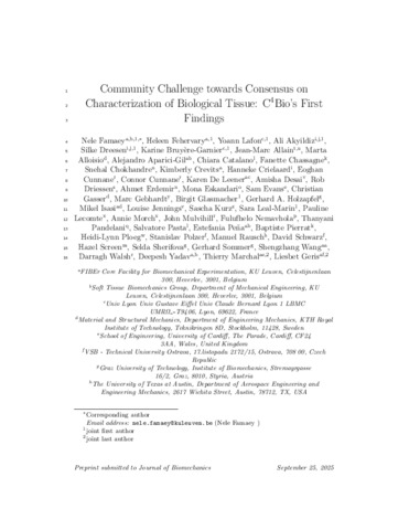 Community challenge towards consensus on characterization of biological tissue: C4Bio’s first findings.