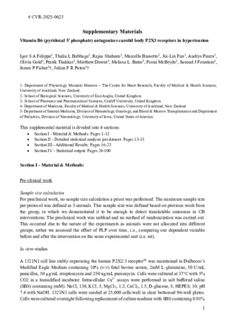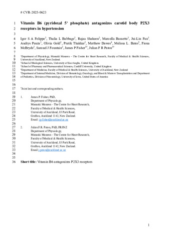Vitamin B6 (pyridoxal 5’ phosphate) antagonizes carotid body P2X3 receptors in hypertension.