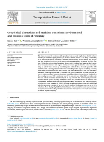 Geopolitical disruptions and maritime transitions: Environmental and economic costs of rerouting.