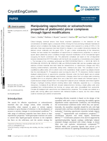 Manipulating vapochromic or solvatochromic properties of platinum(ii) pincer complexes through ligand modifications.