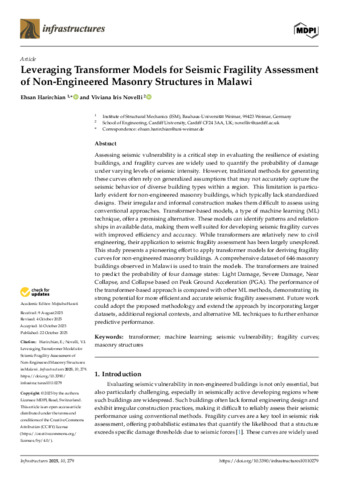 Leveraging transformer models for seismic fragility assessment of non-engineered masonry structures in Malawi.