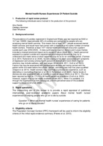 The overarching aim of this review is to provide a rapid appraisal of published, international, peer-reviewed academic papers About mental health nurses' experiences of helping people who go on to die by suicide.