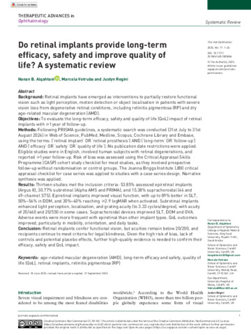 Do retinal implants provide long-term efficacy, safety and improve quality of life? A systematic review.