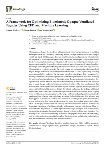 A framework for optimizing biomimetic opaque ventilated façades using CFD and machine learning.