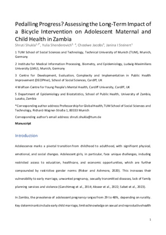 Pedalling progress? Assessing the long-term impact of a bicycle intervention on adolescent maternal and child health in Zambia.