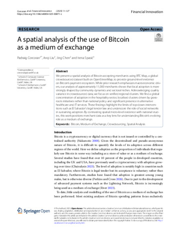 A spatial analysis of the use of Bitcoin as a medium of exchange.