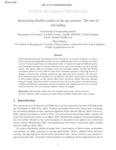 EXPRESS: Incentivizing flexible workers in the gig economy: The Case of ride-hailing.