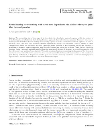 Strain-limiting viscoelasticity with stress rate dependence via Edelen’s theory of primitive thermodynamics.