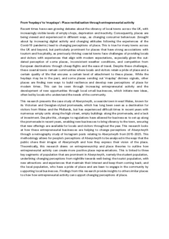 From ‘heydays’ to ‘maydays’: Place revitalisation through entrepreneurial activity [Abstract].