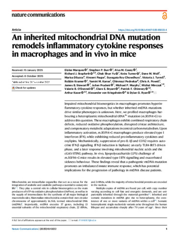 An inherited mitochondrial DNA mutation remodels inflammatory cytokine responses in macrophages and in vivo in mice.