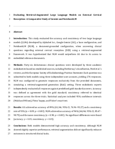 Evaluating retrieval-augmented large language models on external cervical resorption: a comparative study of Gemini and NotebookLM.