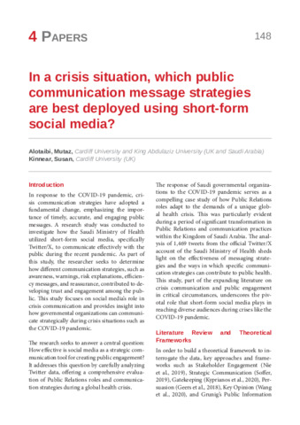 In a crisis situation, which public communication message strategies are best deployed using short-form social media? [Conference Paper].