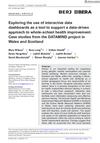 Exploring the use of interactive data dashboards as a tool to support a data-driven approach to whole-school health improvement: Case studies from the DATAMIND project in Wales and Scotland.