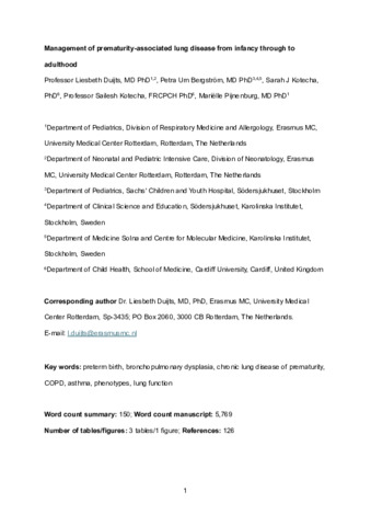 Management of prematurity-associated lung disease from infancy through to adulthood.