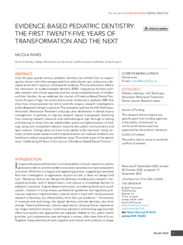Evidence-based pediatric dentistry: the first twenty-five years of transformation and the next.