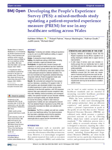 Developing the People's Experience Survey (PES): a mixed-methods study updating a patient-reported experience measure (PREM) for use in any healthcare setting across Wales.