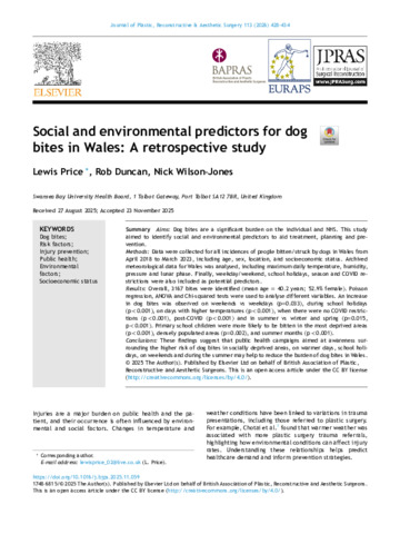 Social and environmental predictors for dog bites in Wales: a retrospective study.