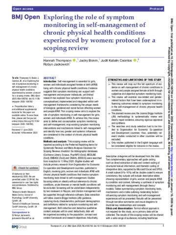 Exploring the role of symptom monitoring in self-management of chronic physical health conditions experienced by women: protocol for a scoping review.