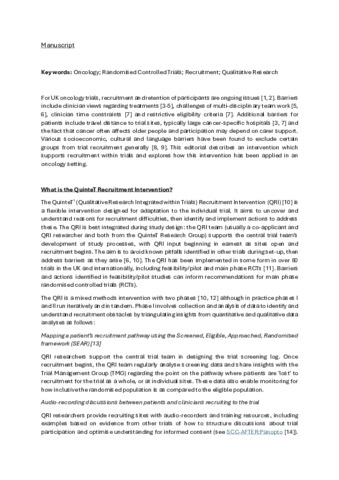 The QuinteT recruitment intervention and its role in oncology randomised controlled trials [Editorial].