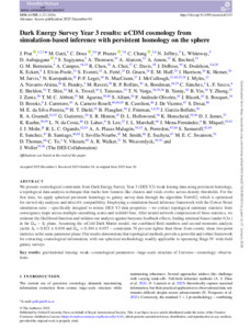 Dark Energy Survey Year 3 results: wCDM cosmology from simulation-based inference with persistent homology on the sphere.
