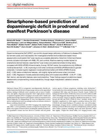 Smartphone-based prediction of dopaminergic deficit in prodromal and manifest Parkinson’s disease.